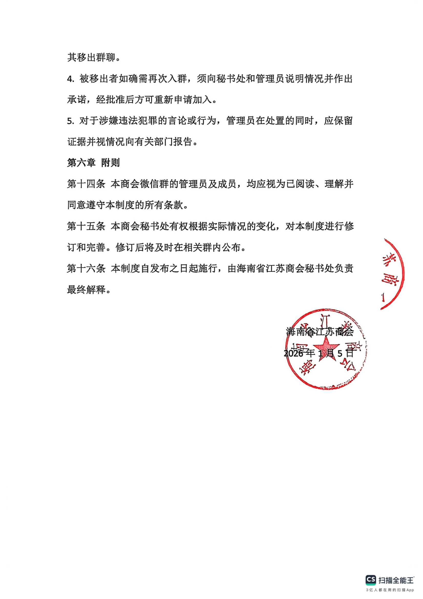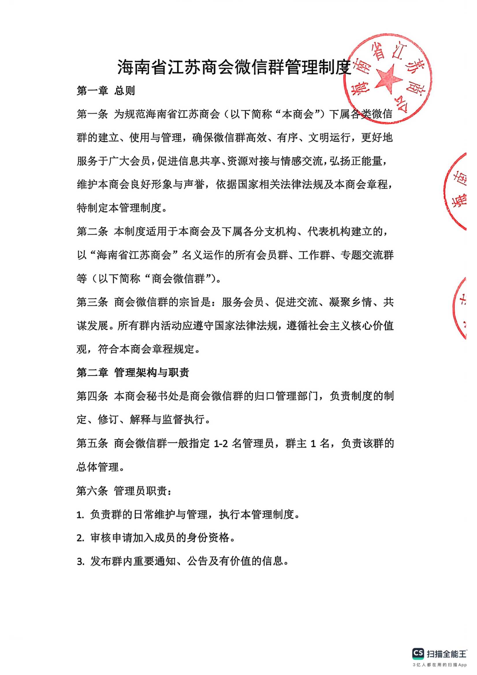 海南省江苏商会微信群管理制度
